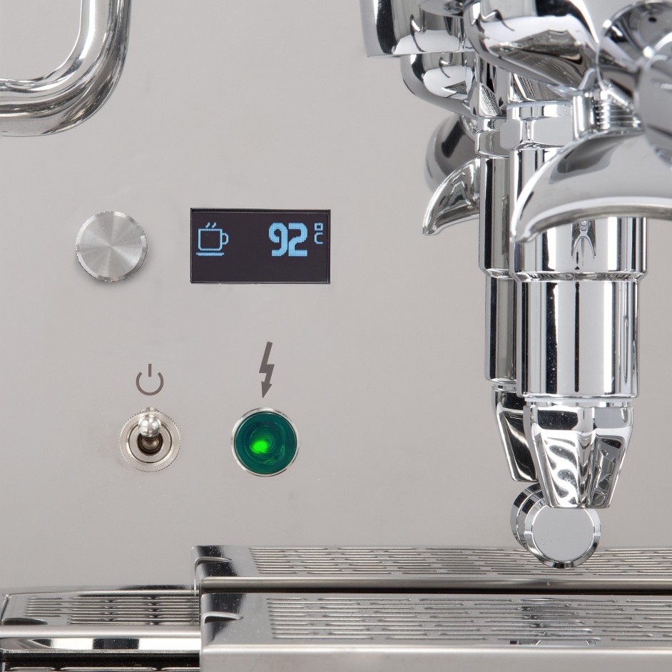 De Synchronika II biedt een intuïtieve bediening met een handige draaiknop, waarmee je eenvoudig door de menu’s navigeert en instellingen aanpast. Het OLED-display geeft helder de gekozen instellingen weer, zoals de temperatuur, zodat je elke keer de perfecte koffie kunt zetten. Daarnaast is de machine voorzien van een shot counter, die het aantal bereide koffies bijhoudt.